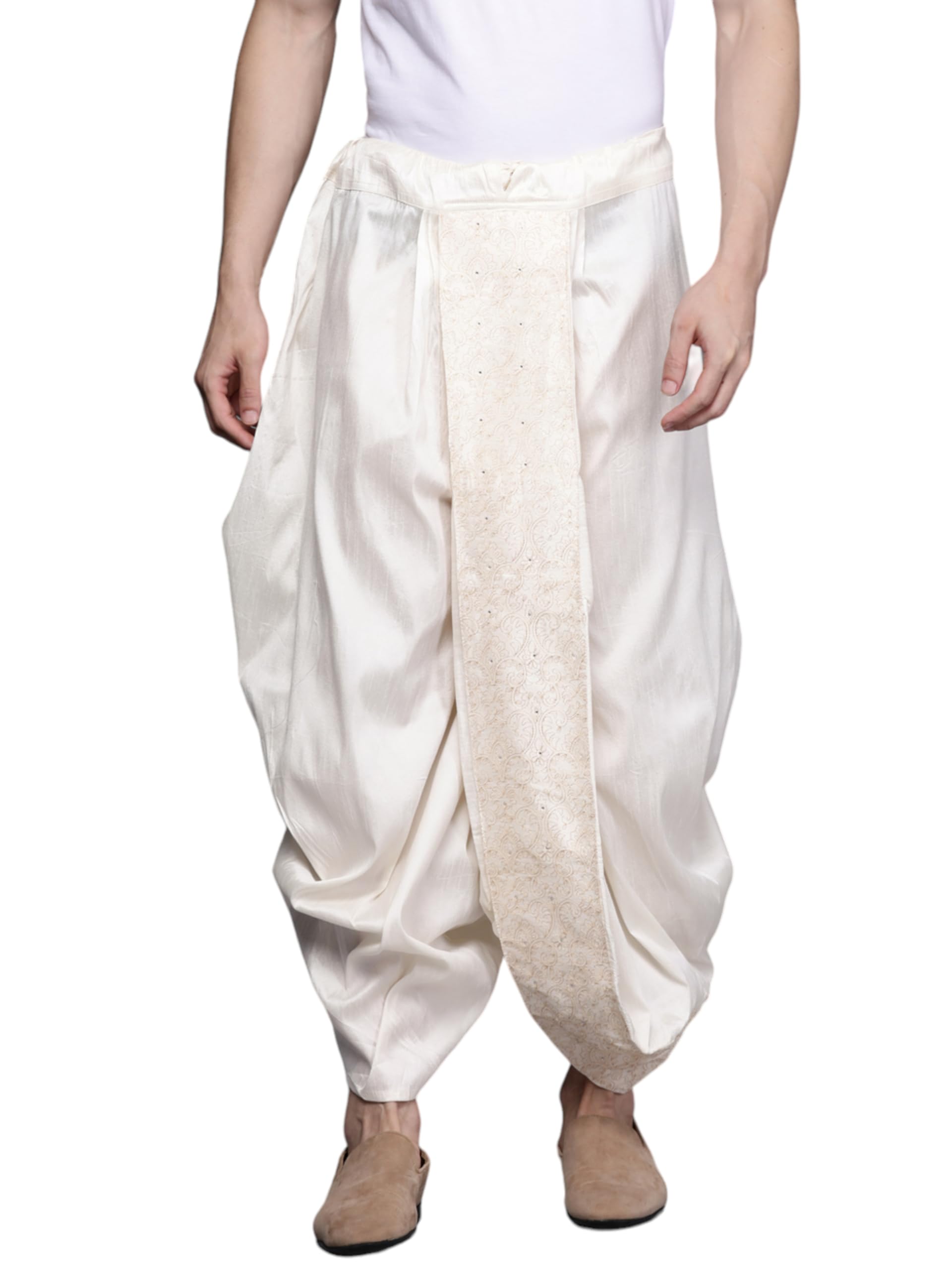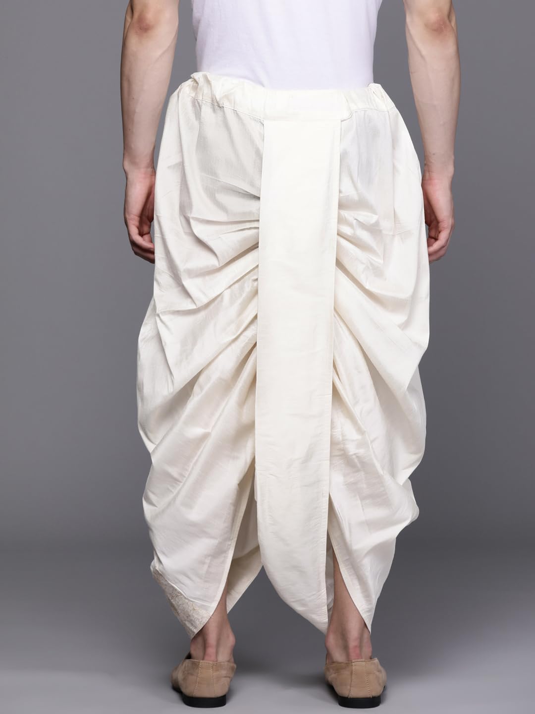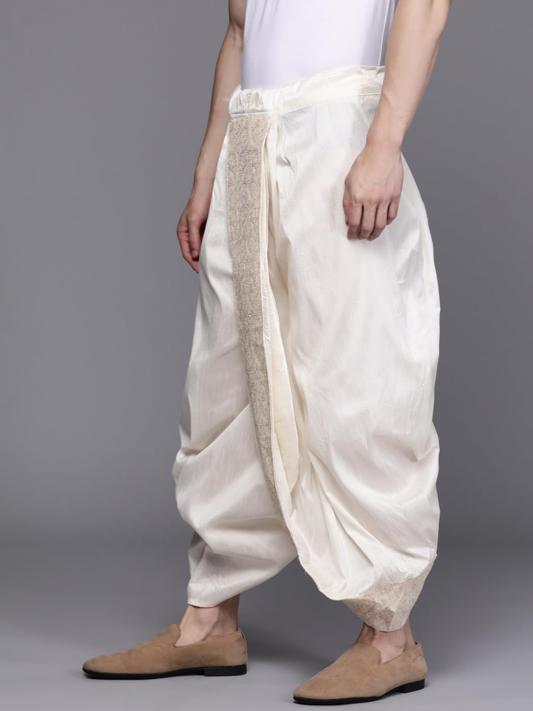 Manyavar Mens Cream Art Silk Solid Dhotis
