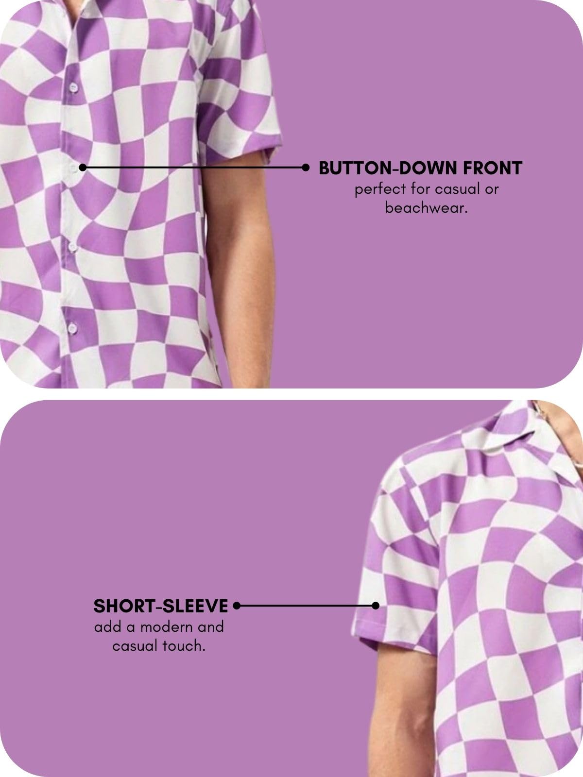 With its bold purple base and fancy abstract print, this shirt brings a touch of vibrancy to your ensembles. Dress it up or down depending on the occasion—tuck it into tailored trousers for a polished look, or pair it with sneakers and denim for a relaxed weekend vibe. It’s your go-to option for parties, evening wear, or even festive functions.