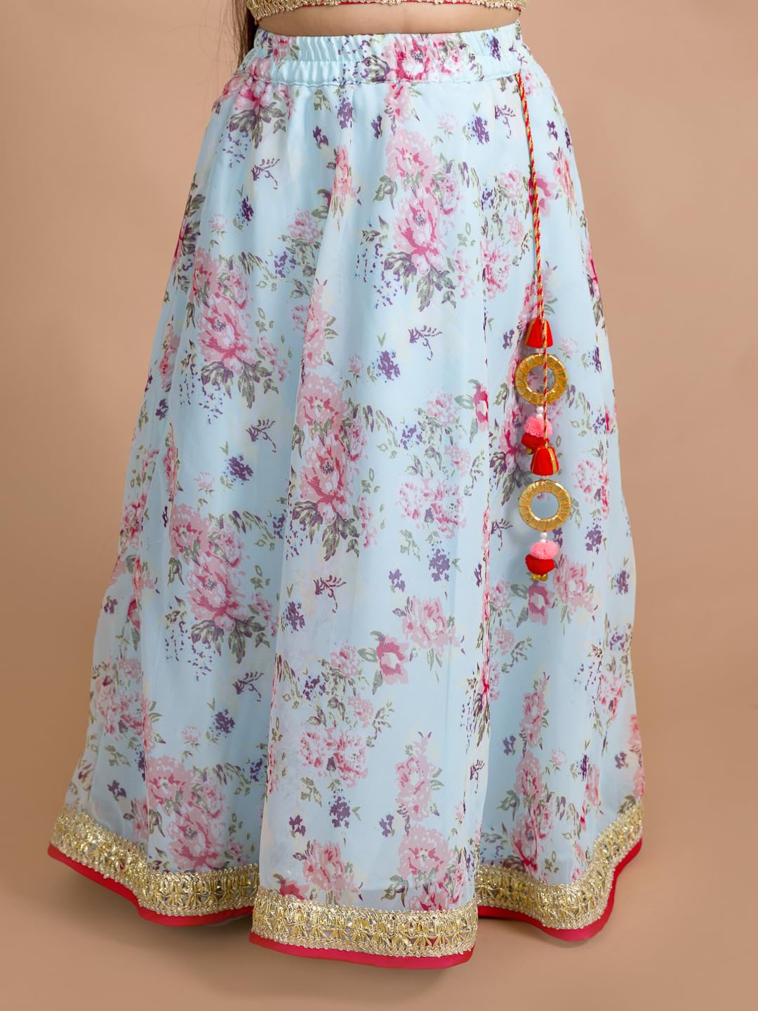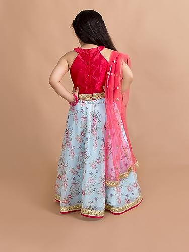 Pspeaches Girl’s Polyester Readymade Red Blue Floral Lehenga Choli Set (Red-6-7Y)